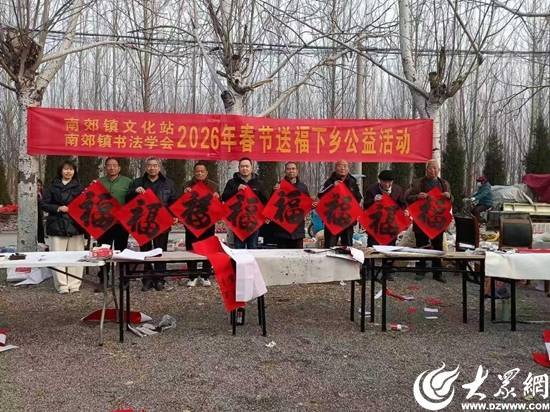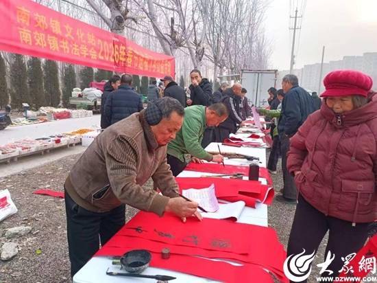 近日,淄博市周村区南郊镇开展“送福下乡”文化惠民活动,组织多名书法协会老师在集市、商超等场所为当地群众现场书写春联、福字,将浓浓年味和文化温暖送到百姓家门口。